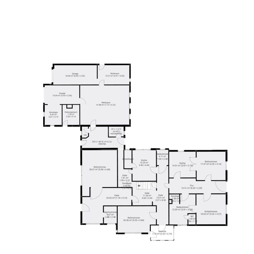 Dieses Anwesen ist ideal für Investoren oder Familien mit größerem Platzbedarf, die Wert auf Flexibilität legen. Mit überschaubarem Aufwand kann eine attraktive Kombination aus mehreren Wohneinheiten, Werkstattflächen und Garagen entstehen – ein Objekt mit Seltenheitswert.