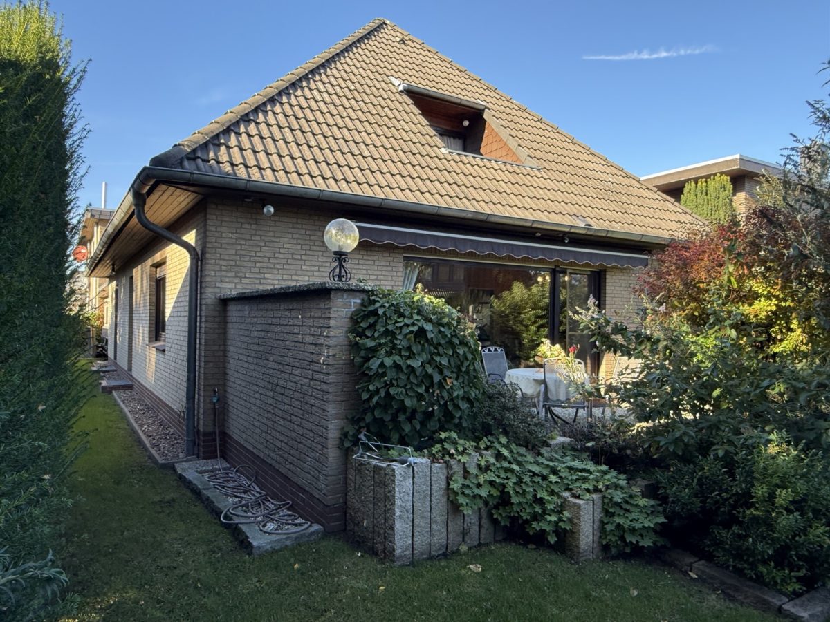 Dieser gepflegte Einfamilienbungalow mit ausgebautem Dachgeschoss wurde 1977 in massiver Klinkerbauweise errichtet und steht auf einem 565 m² großen, nach WEG geteilten Grundstück in ruhiger, rückwärtiger Lage mit gemeinsamer Zufahrt. Mit rund 170 m² Wohnfläche und etwa 60 m² Nutzfläche auf drei Ebenen bietet das Haus viel Raum für Familien. Die Lage ist besonders attraktiv: stadtnah und ruhig, mit unmittelbarer Nähe zu Krankenhaus, Schulen und Einkaufsmöglichkeiten – ideal für Familien und Berufspendler.
